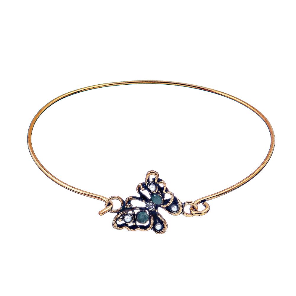 Браслет Alcozer&J, бабочка, жемчуг, изумруд, Swarovski, AL2406-B4557C золотистый
