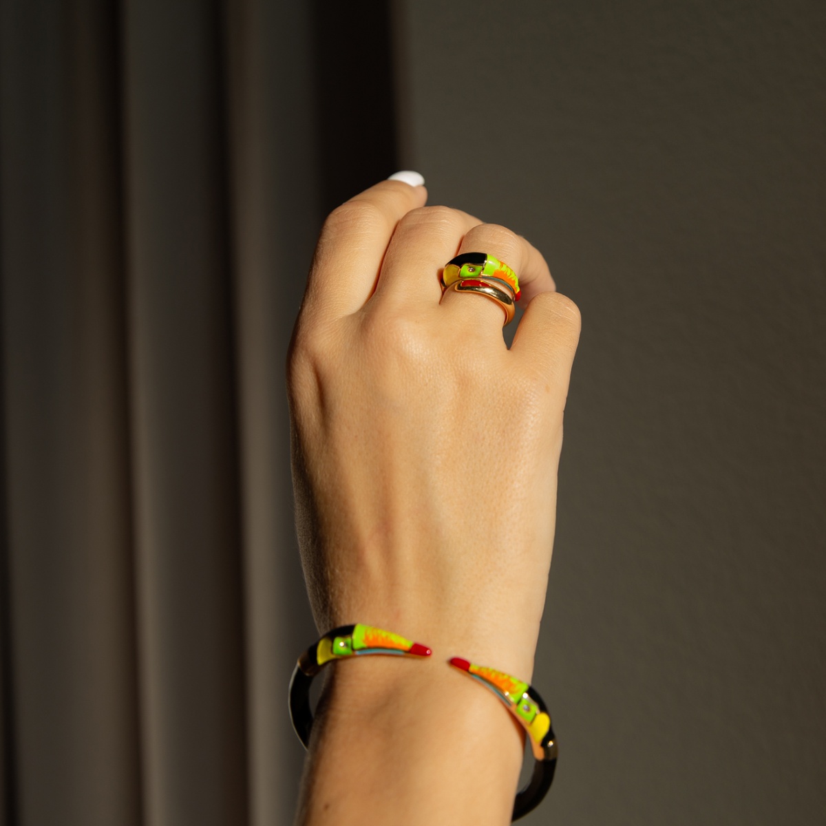 | Особенности дизайна | кафф, тукан с эмалью и кристаллами | |