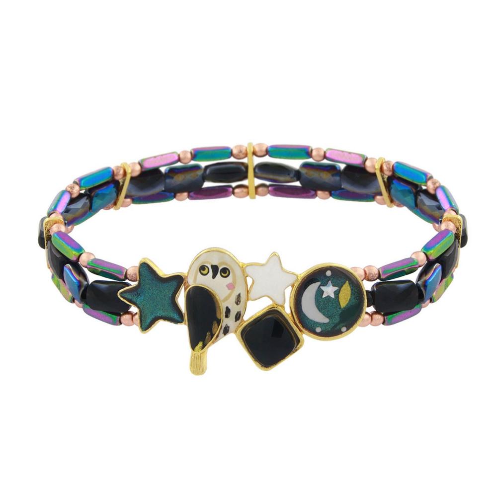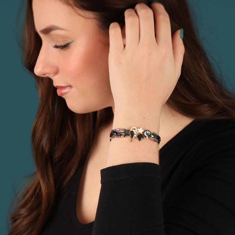 Браслет Taratata, Clair de lune, стрейч,смола,бусины,блестки,краска,пудра, TT-H24-04307-207 зеленый