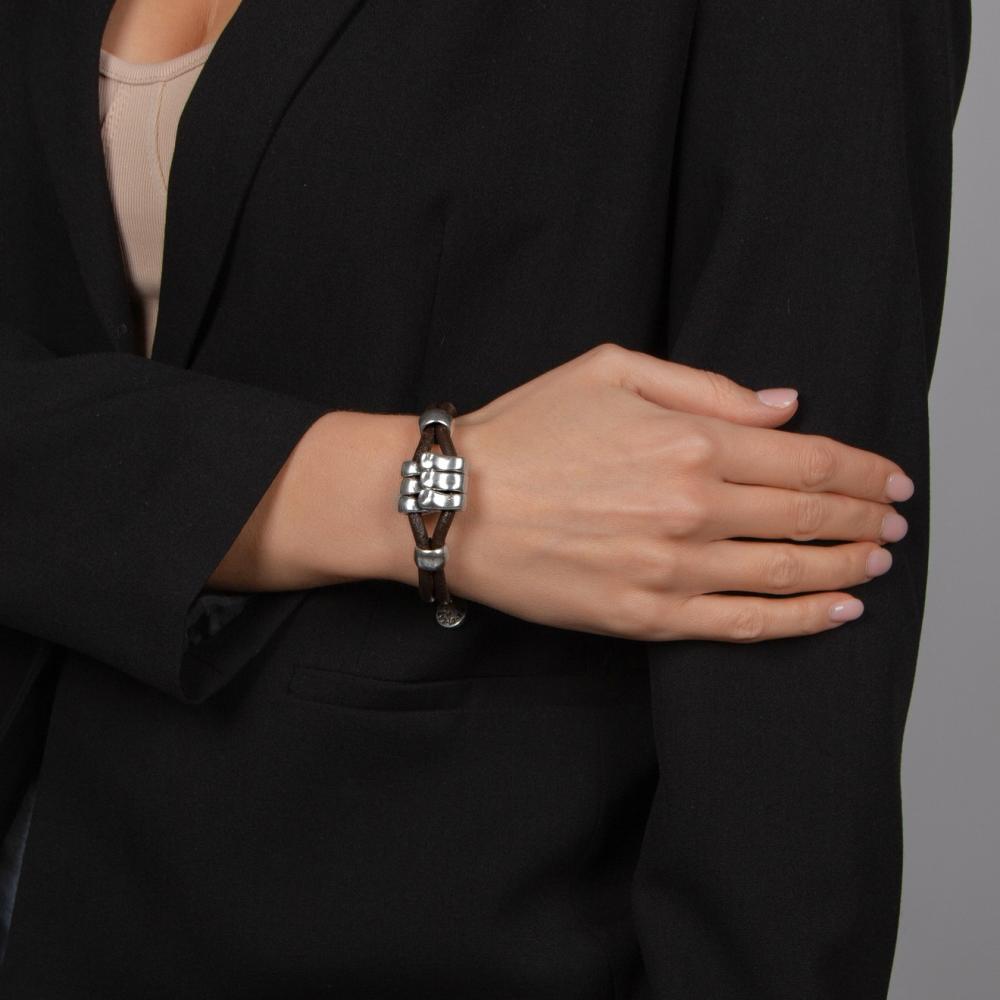 Откройте для себя изысканный акцент вашего стиля с кожаным браслетом Aire, который сочетает в себе элегантность и уникальный дизайн. Этот браслет является отражением современной моды и ручной работы, что делает его не только аксессуаром, но и произведением искусства.
