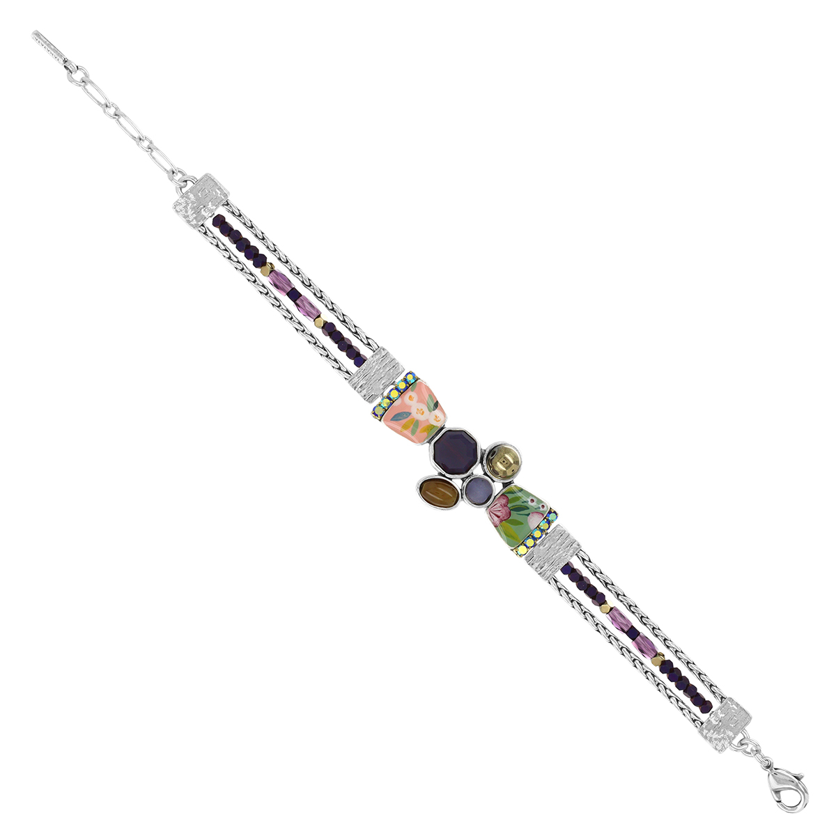 Созданный в лучших традициях французской бижутерии, он отличается элегантностью форм и великолепием исполнения. Цветная смола придает украшению яркость и насыщенность оттенков, позволяя браслету гармонировать с различными нарядами — от повседневных до вечерних.