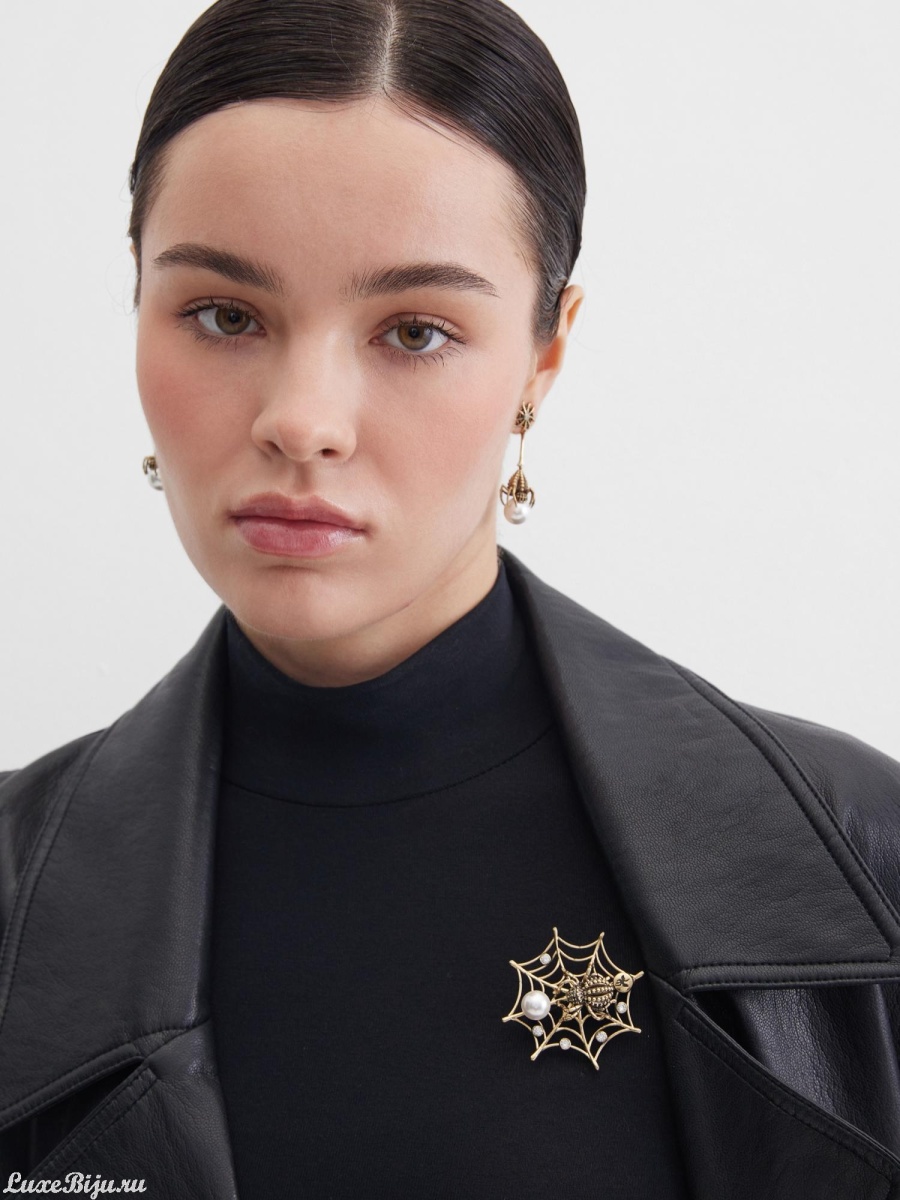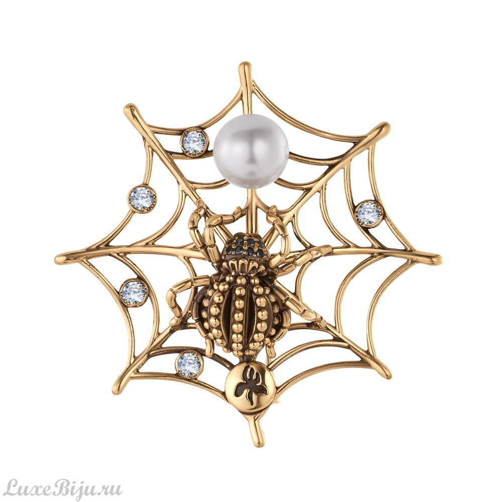 Брошь ручной работы REGNO DEI RAGNI. Итальянский дизайн. Паук — многогранный символ, чаще всего олицетворяющий созидание, творчество, упорство и трудолюбие. Благодаря способности плести паутину, он считается «ткачом судьбы», мудрым творцом, хранителем домашнего очага и символом удачи, богатства.