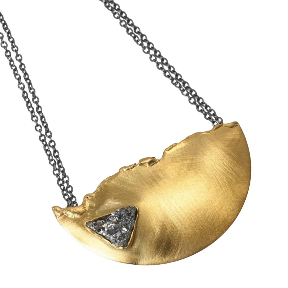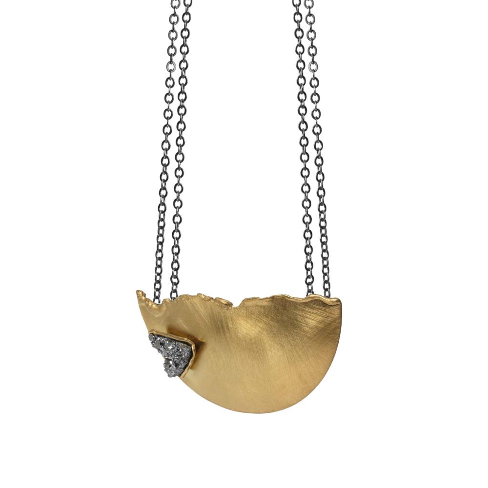 Каждое колье из коллекции Lulana выполнено с особой тщательностью, что делает его уникальным аксессуаром для любого случая. В центре внимания данного изделия — натуральная друза агата, которая славится своей природной красотой и оригинальными узорами. Вставка материала друза агата добавляет изысканности и привносит нотку таинственности в общий дизайн колье.
