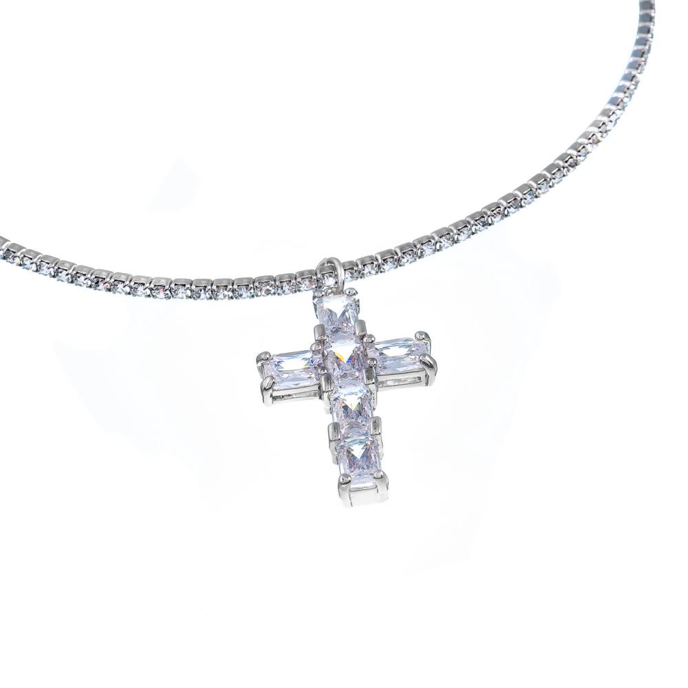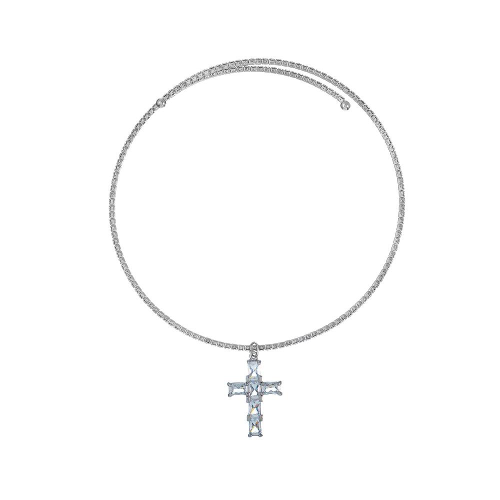 Колье Moon Paris, Ringo Queen, гривна с крестом и кристаллами, MRQ-26.01-001 серебристый