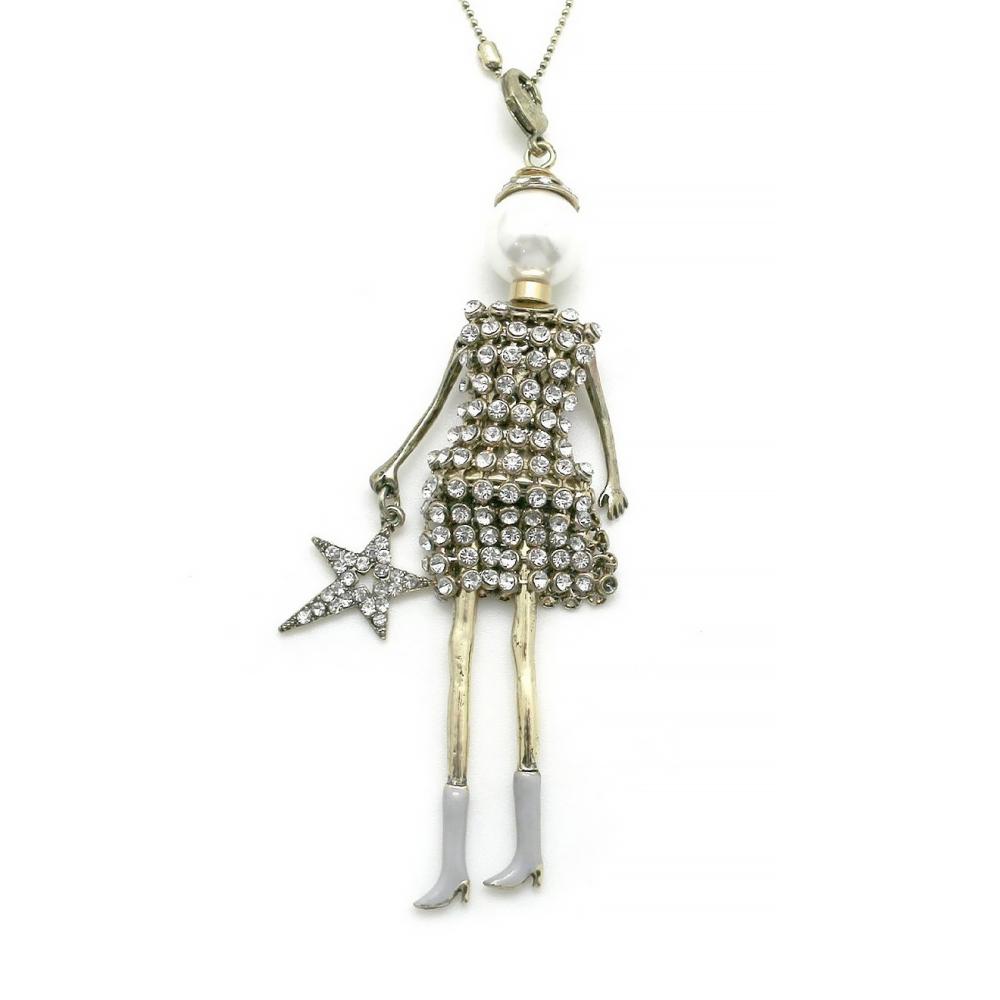 Центральным элементом подвески является фигурка куклы Элоизы, одетой в платье усыпанное стразами, которые переливаются на свету, привлекая восхищенные взгляды. В руке кукла держит звездочку — символ мечтательности и стремления к чудесам. Длина самой подвески составляет 12,5 см, что делает ее заметным и стильным акцентом на любой шее.
