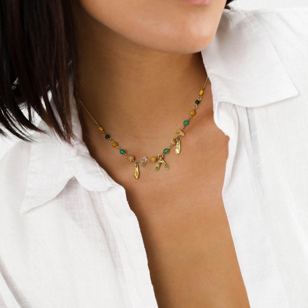 Колье Franck Herval, Mathilde, с жадом, яшмой, цитрином, костью, агатом, FH24.1-15-63973 золотистый