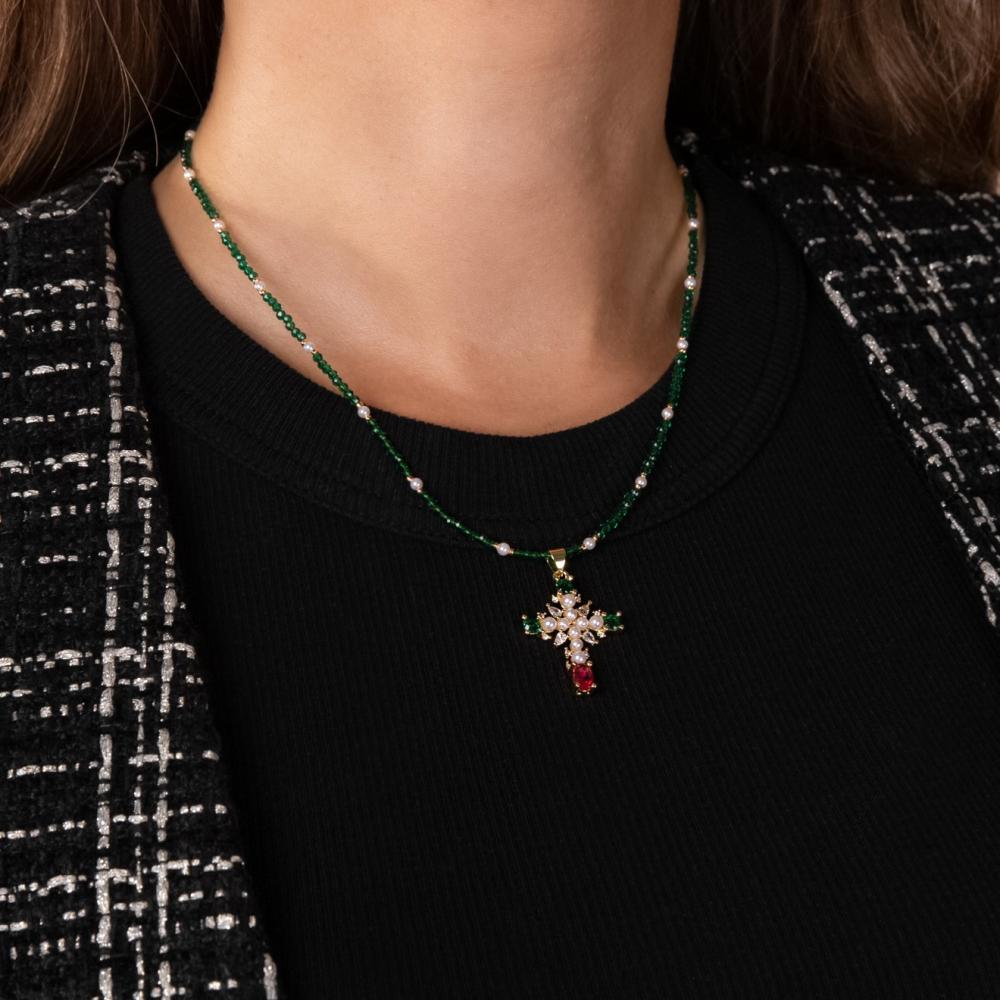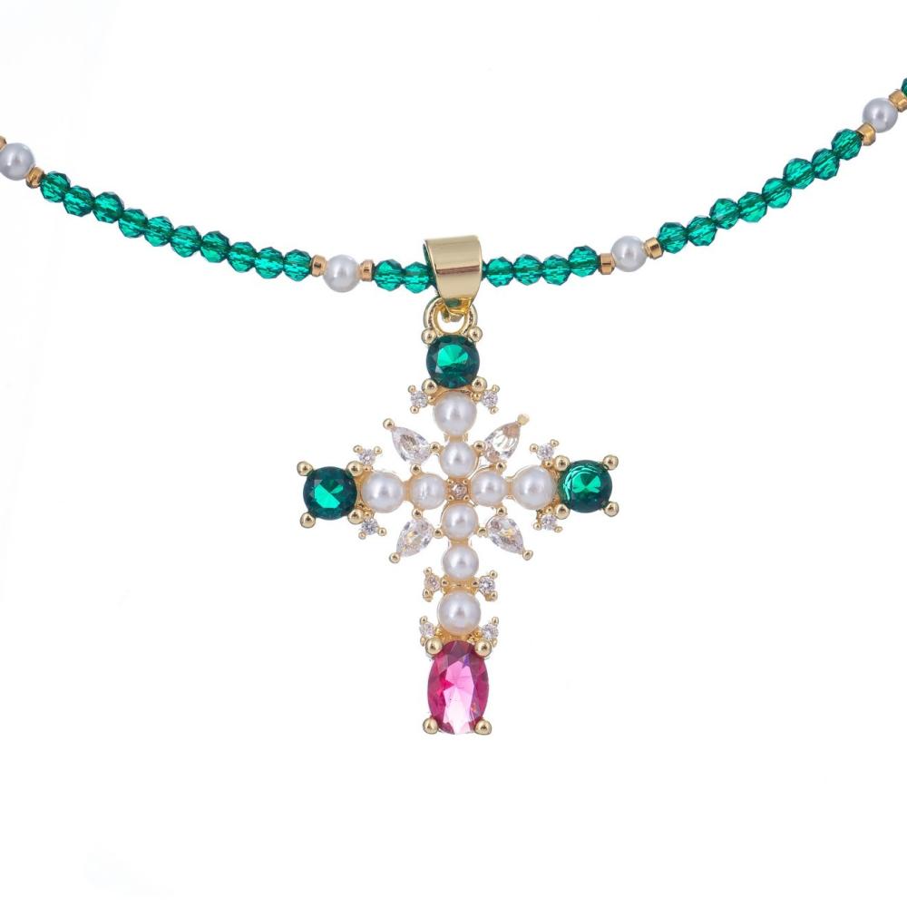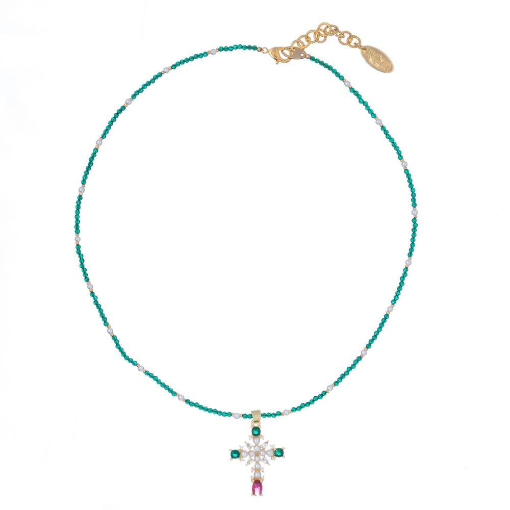 Колье Lanzerotti, Splendore, жемчуг, кристаллы, цирконий, LZ-24.08-344 зеленый