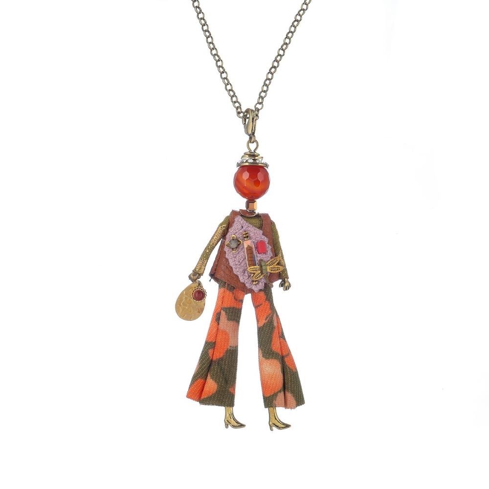 Тип изделия: Подвеска в виде очаровательной куколки Меллони, одетой в брюки с модным принтом и коричневую жилетку. Это украшение добавит игривости и неповторимости вашему наряду.