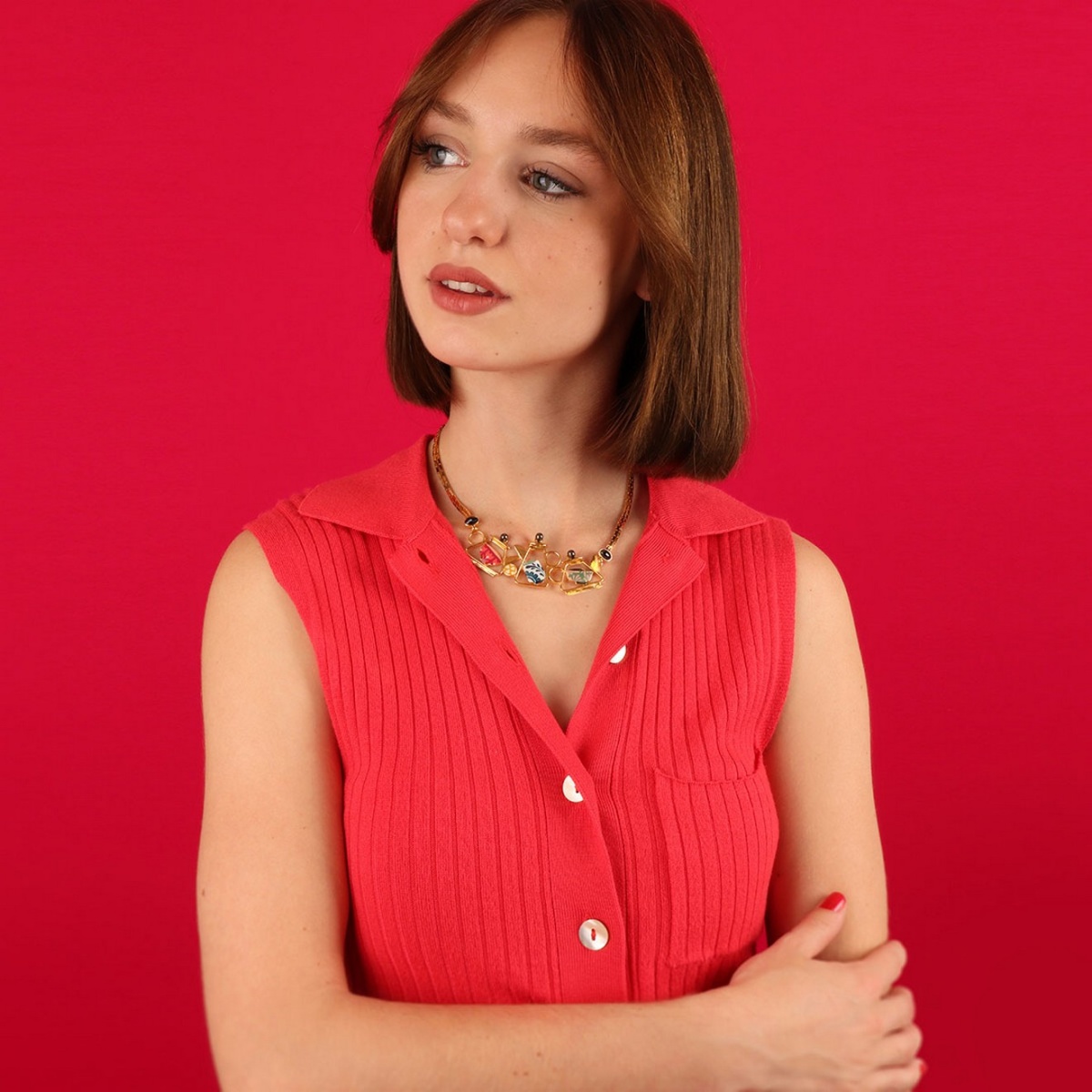 Откройте для себя утонченное колье Cannelle, которое станет изысканным акцентом в вашем образе. Это колье выполнено с использованием высококачественной цветной смолы, придающей изделию яркий и насыщенный оттенок, который не потускнеет со временем. Каждый элемент колье тщательно отполирован для достижения безупречного блеска и гладкости.