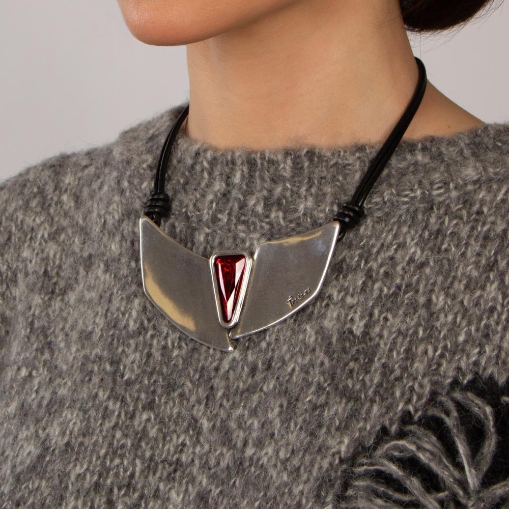 Откройте для себя изысканный мир утонченности и стиля с колье Odisea из кожи с кристаллом — вашим идеальным аксессуаром, который добавит роскоши любому образу.