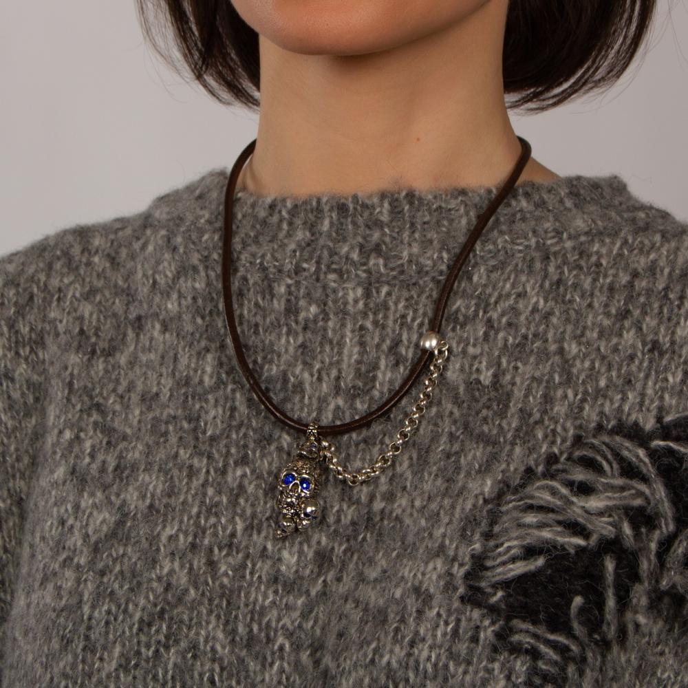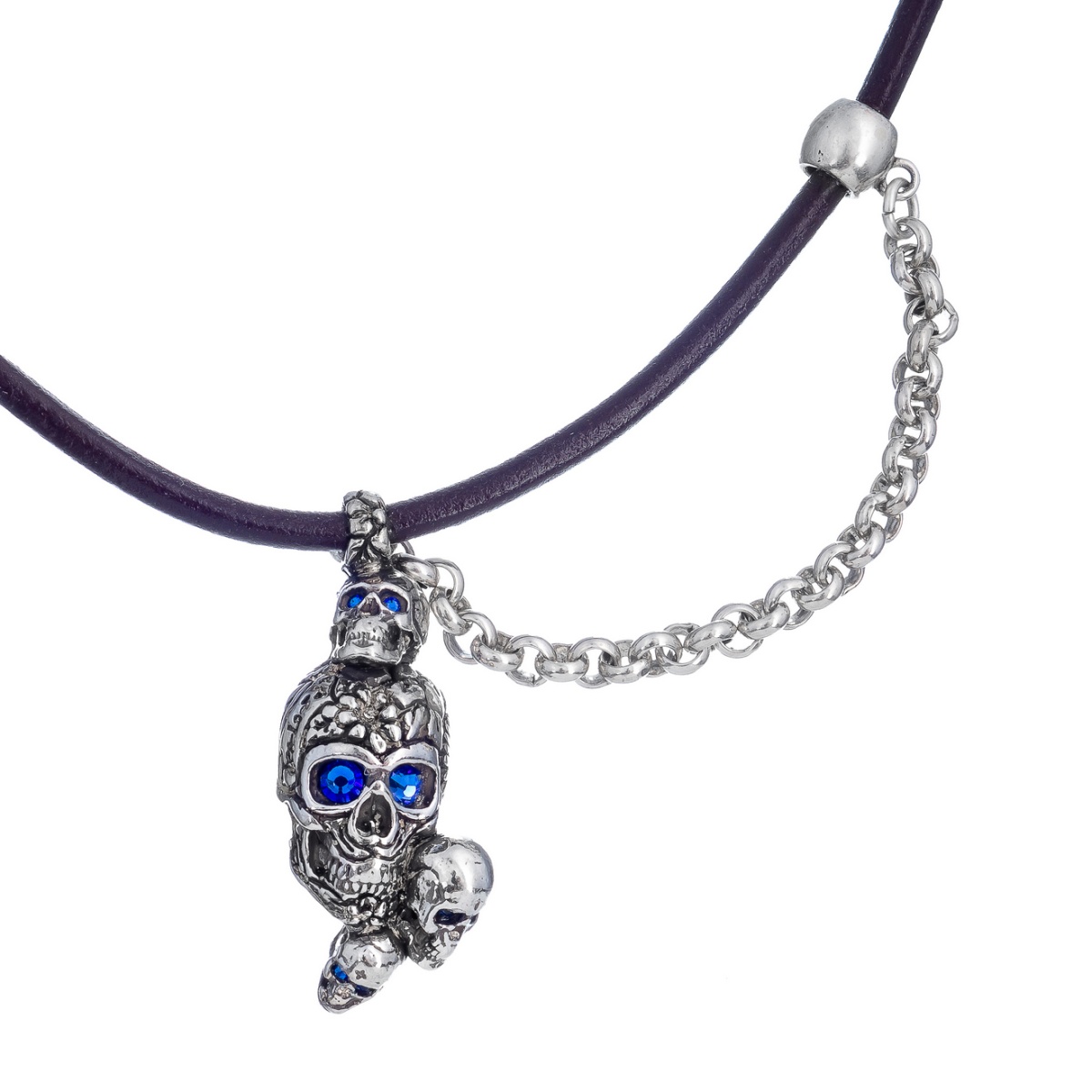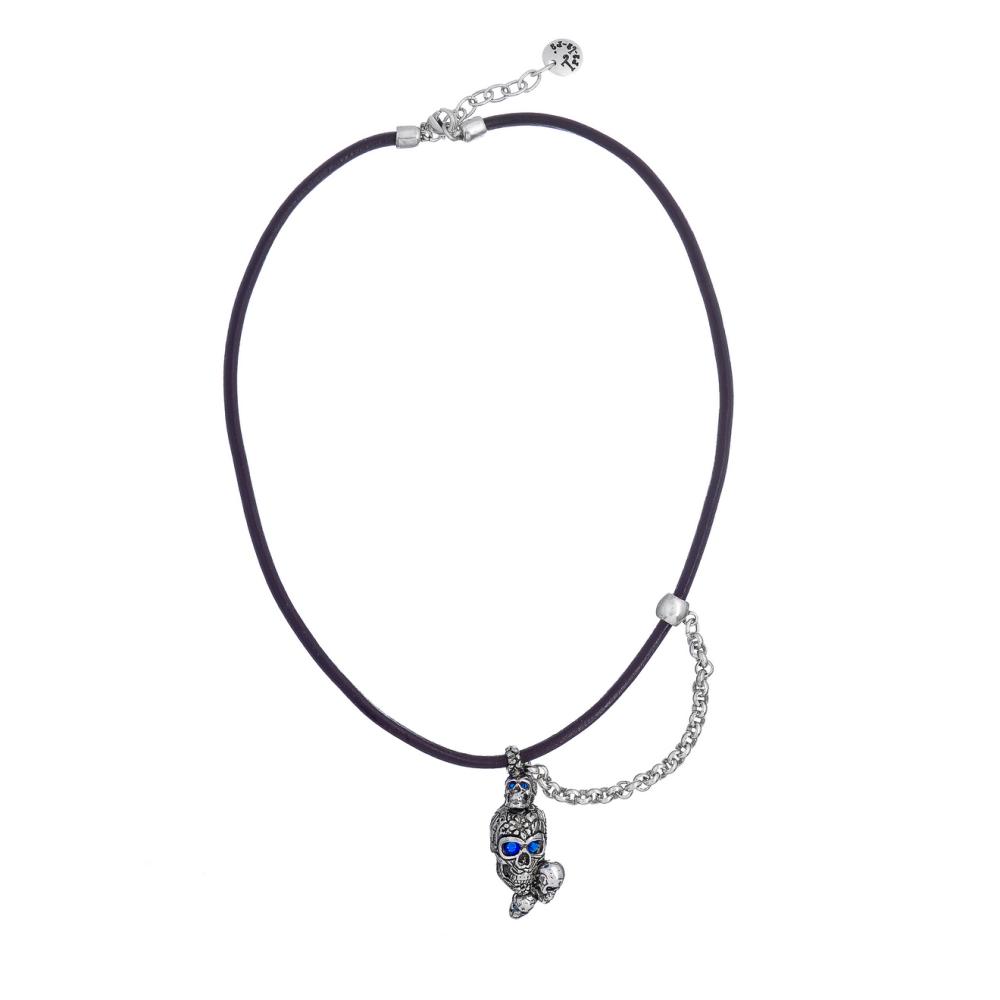 Колье Tra-la-ra, Tatoo, с подвеской-черепами и кристаллами, TLR24-522P204 синий