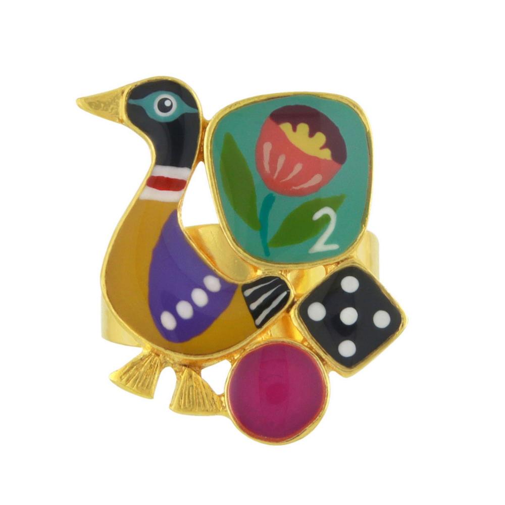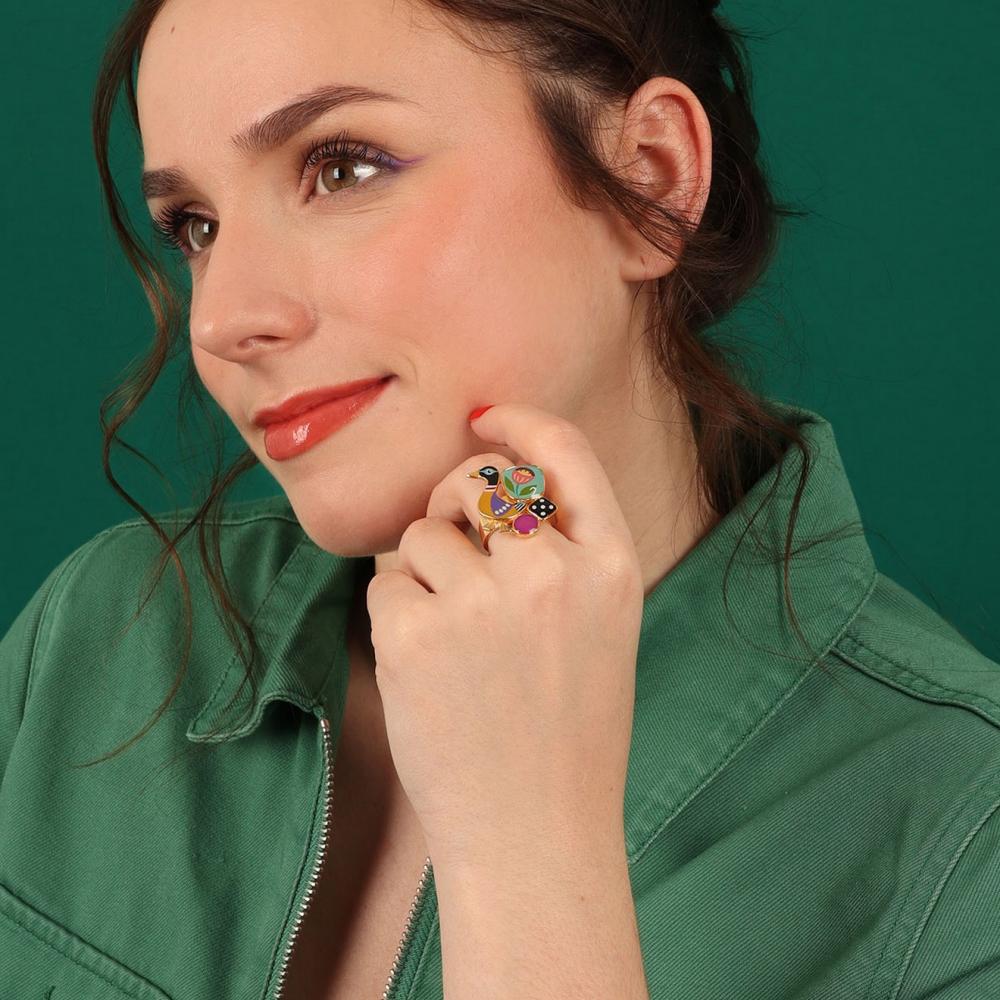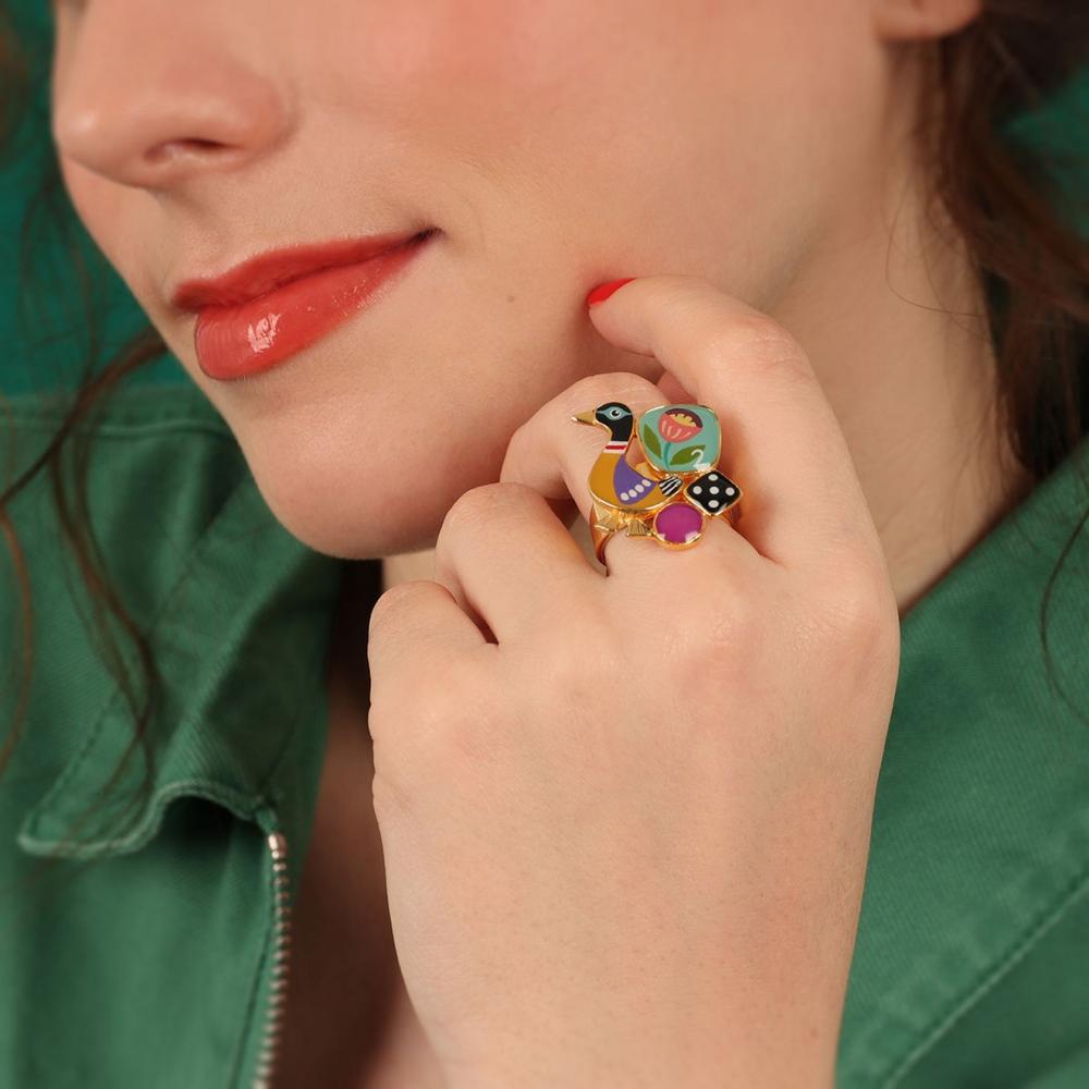 Золотистое кольцо из коллекции Jeu De L`oie от Taratata — это воплощение элегантности и яркости в одном аксессуаре. Это разъемное кольцо украшено цветной смолой, что придает ему уникальный и запоминающийся вид.