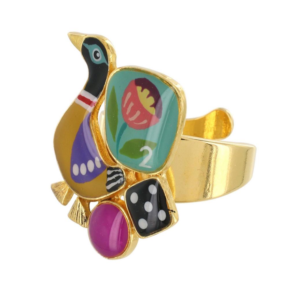 Кольцо Taratata, Jeu De L`oie, разъемное, с цветной смолой, TT-H24-01403-20M золотистый