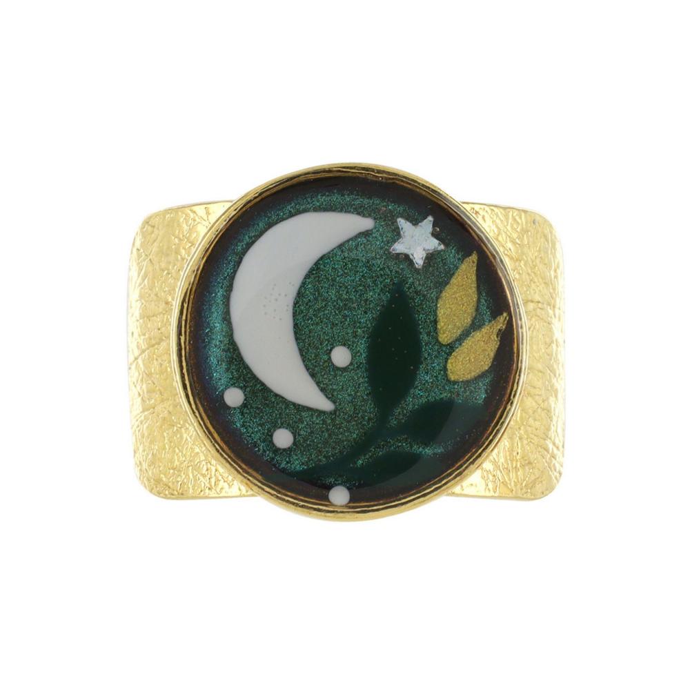 Каждое изделие из коллекции Clair de lune выполнено с особой заботой и вниманием к деталям. Кольцо украшено цветной смолой, которая придает ему неповторимый блеск и глубину цвета. Использование золотой краски добавляет изысканный акцент, делая этот аксессуар поистине роскошным.