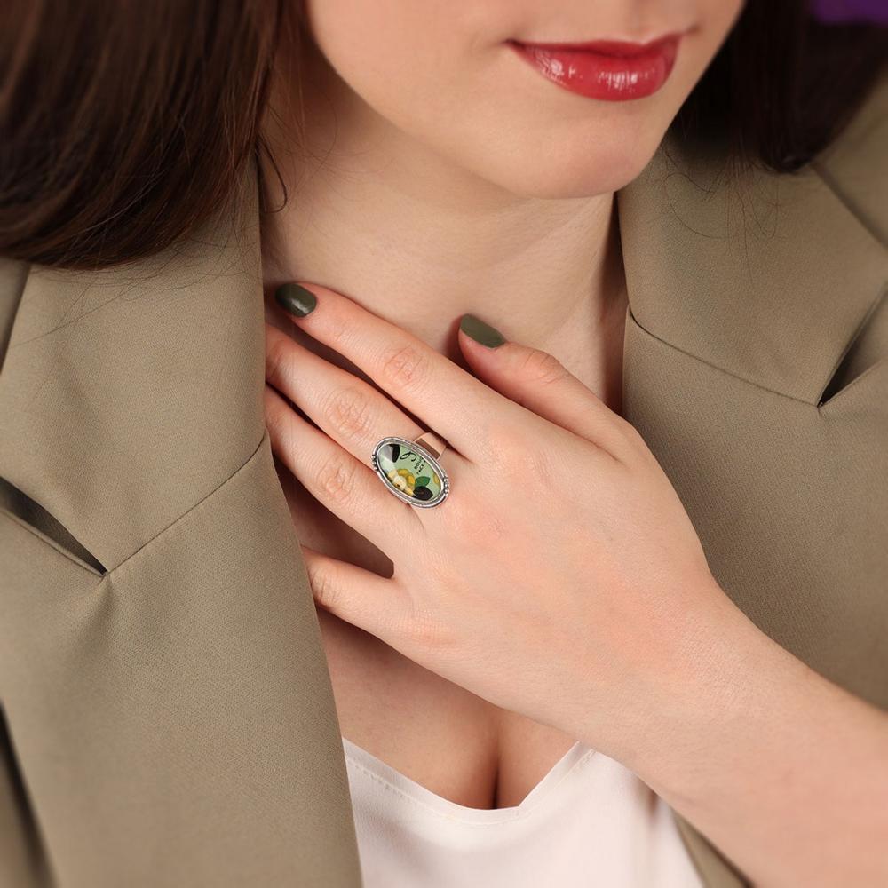 Сочетание серебристого цвета металла и игры цветной смолы придает этому аксессуару особый шик и гламур. Блестки, запеченные внутри смолы, создают эффект звездного неба или мерцающего праздника на вашем пальце.