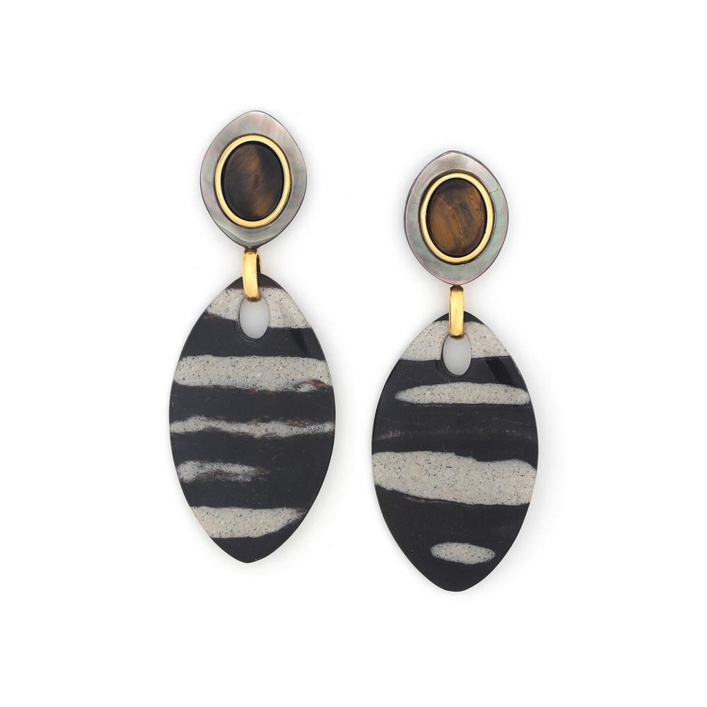 Серьги Nature Bijoux, Zebra, тигровый глаз, смолистый песок,перламутр, NB24.2-12-79721 черный