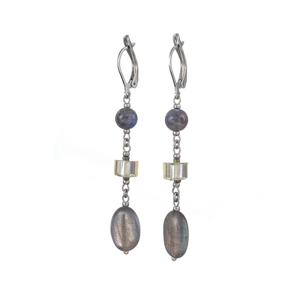 Серьги Lanzerotti, Verde, с лабрадоритом, гематитом и цитрином, LZ-24.12-599 серый
