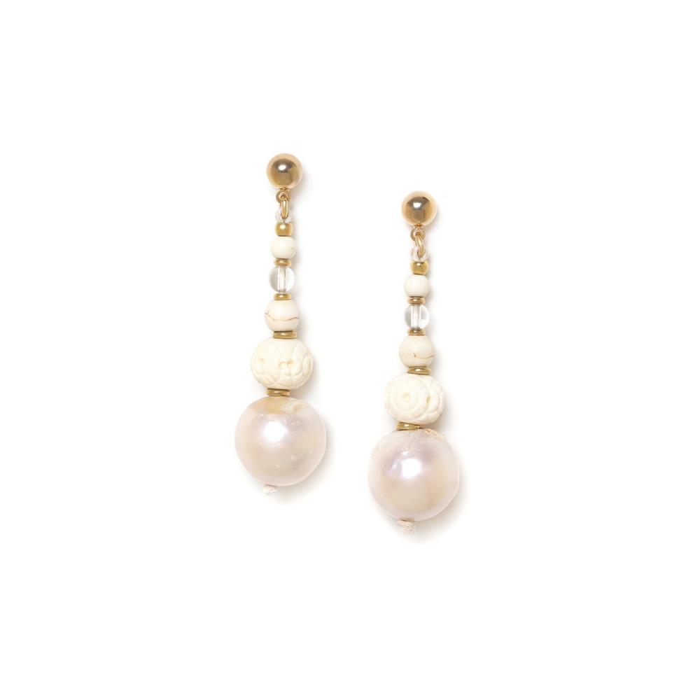 Серьги Nature Bijoux, Pondichery, жемчуг, горный хрусталь, кость, говлит, NB24.1-12-79255 белый