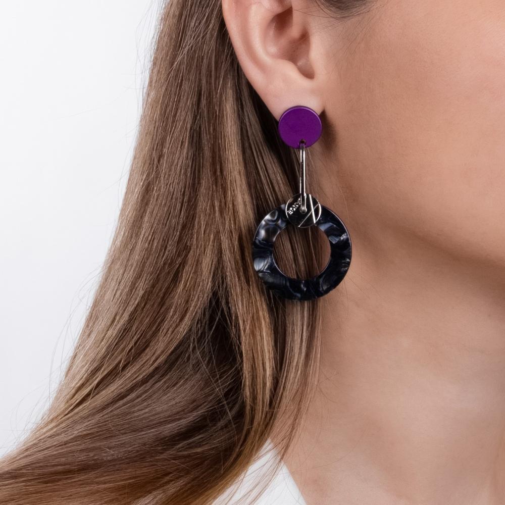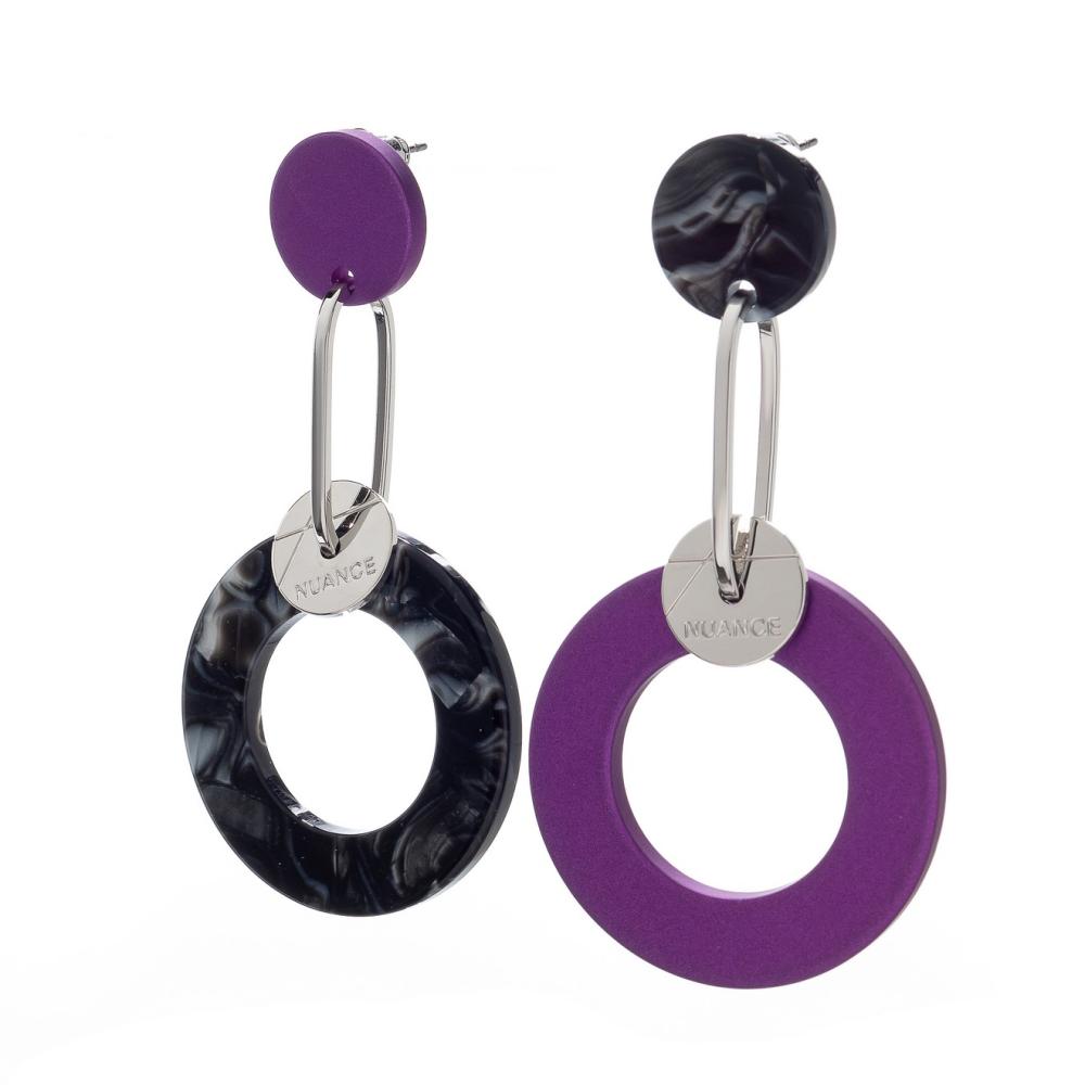 Серьги Nuance, асимметричные, с подвеской-кольцом, NFN-24.04-056 фиолетовый