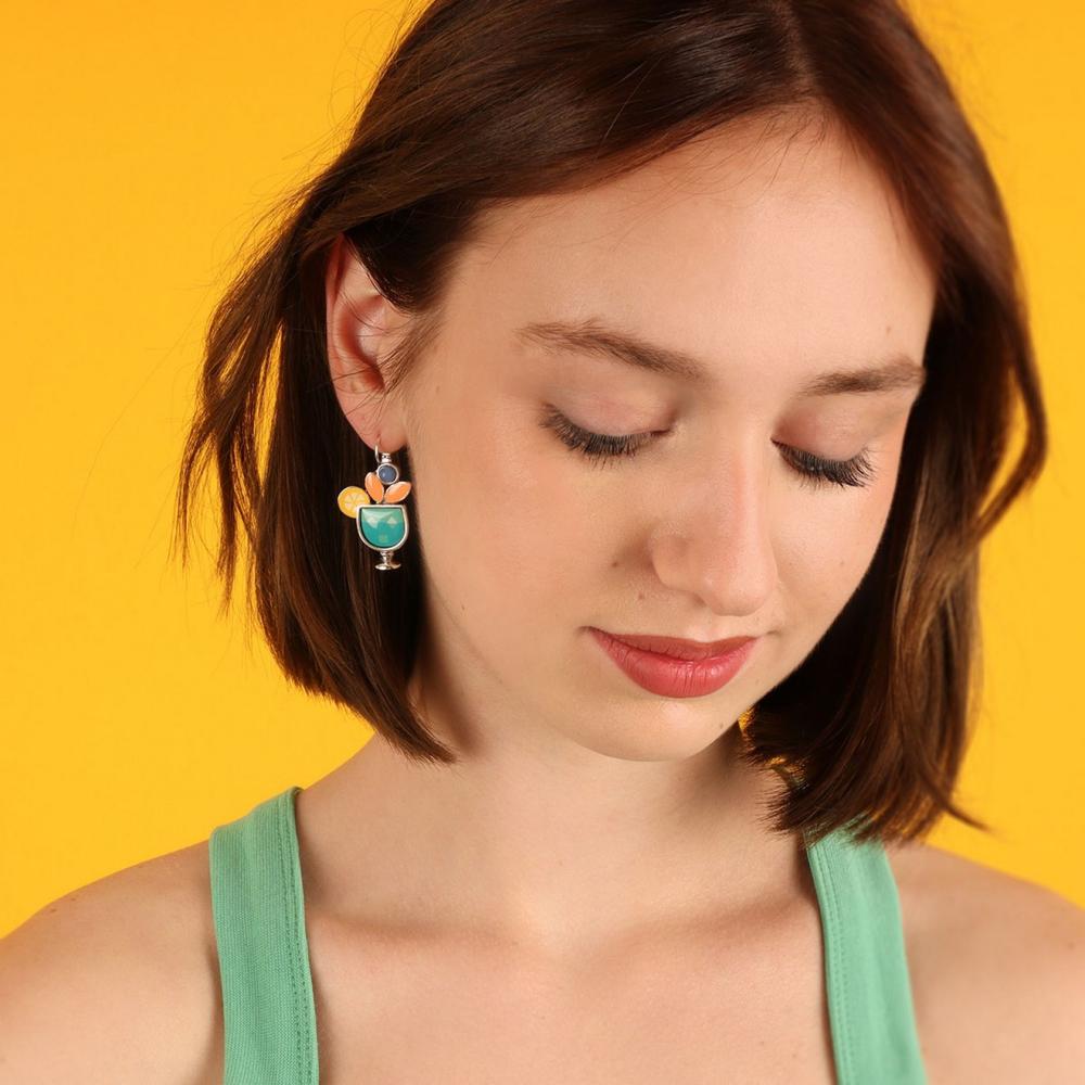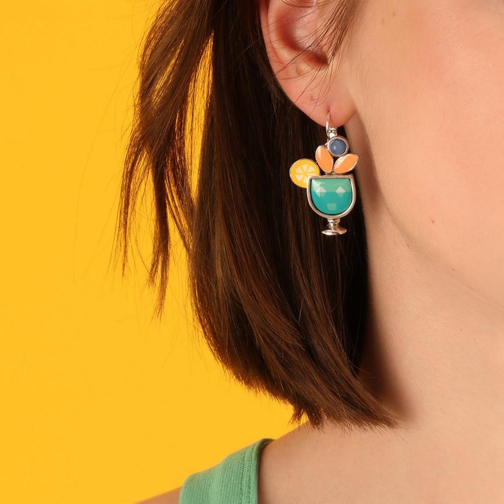 Каждая пара этих привлекательных сережек украшена ярко-цветной смолой, что добавляет изюминку и оригинальность дизайну. В сочетании с тонированными нефритовыми бусинами, которые придают украшению особый шарм и благородство, серьги Cocktail выделяются своим неподражаемым стилем.