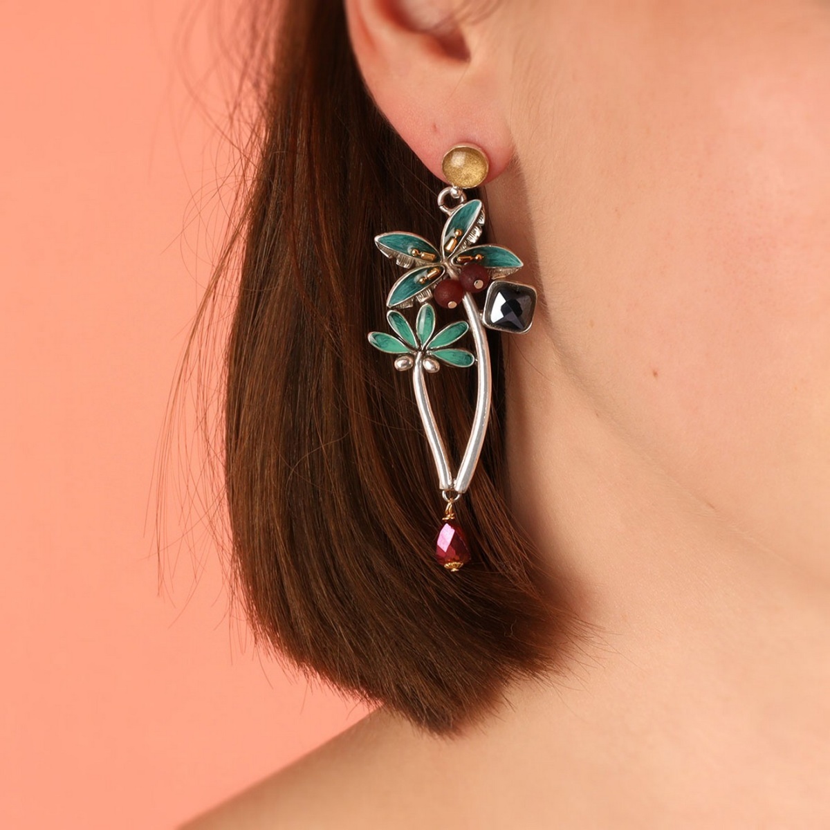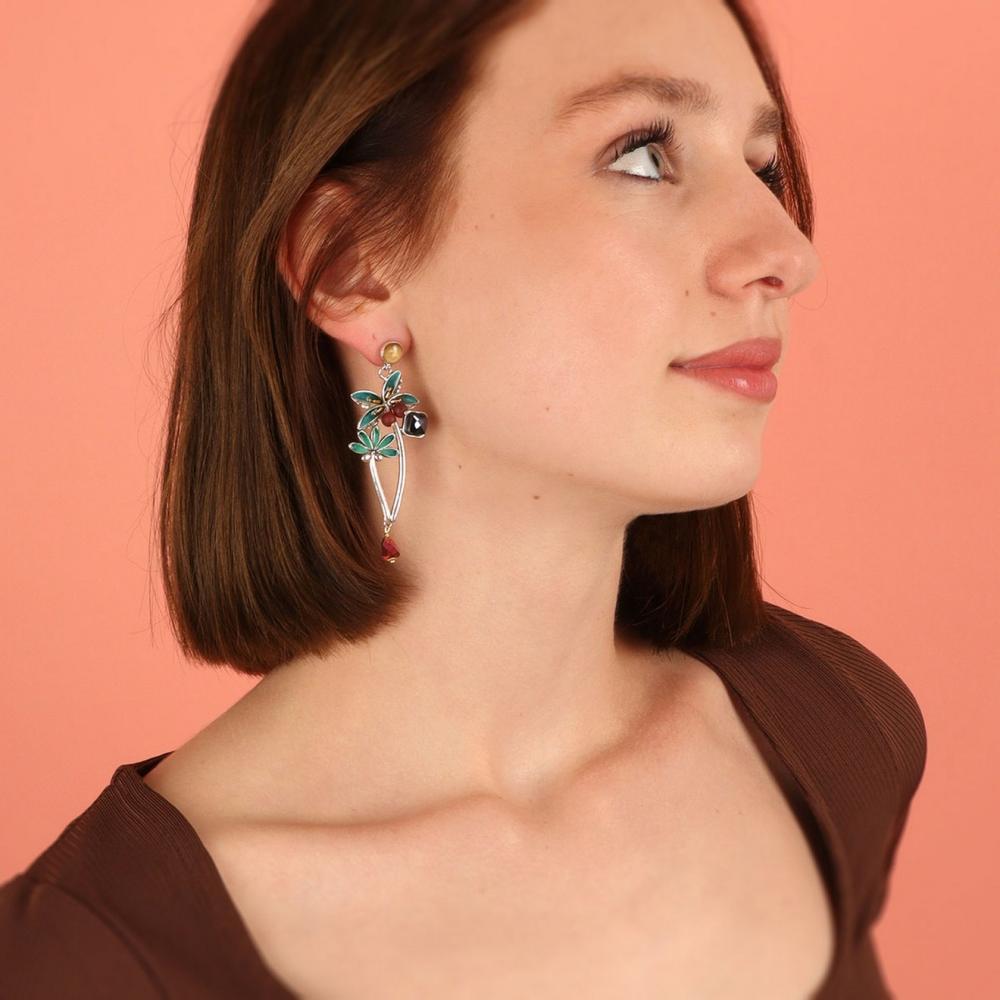 Каждая серьга тщательно выполнена из высококачественных материалов. Основой служит прочная металлическая фурнитура, на которую нанесена яркая и прочная цветная смола. Благодаря этому материалы сохраняют свою насыщенность и глубину цвета на долгие годы. Изумительное свечение придают элегантные стеклянные бусины, которые великолепно играют на свету и добавляют украшению ощущение роскоши.